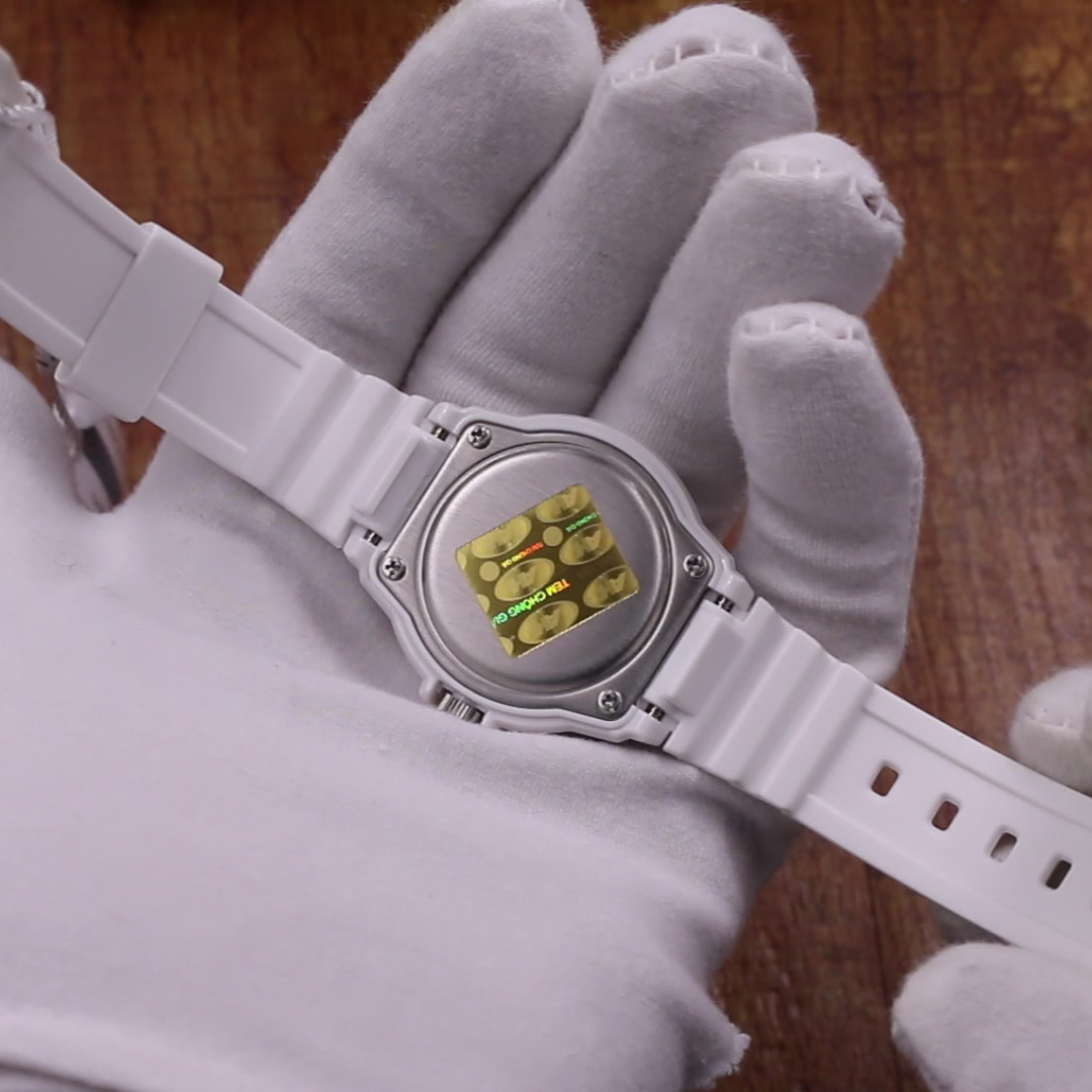 - Vật liệu vỏ / gờ: Nhựa - Dây đeo bằng nhựa - Mặt kính nhựa - Khả năng chống nước ở độ sâu 50 mét - Giờ hiện hành thông thường Đồng hồ kim:
