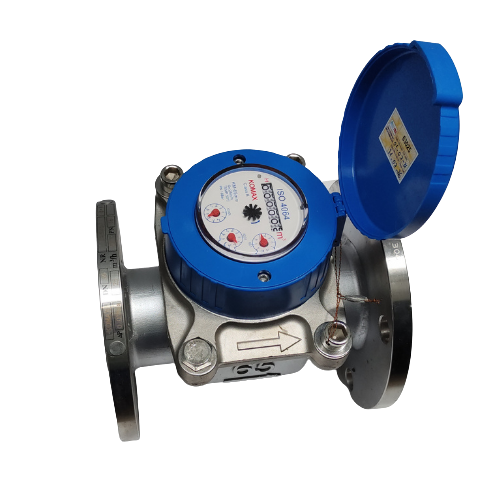 Đồng hồ nước komax thân inox DN125 nối bích sản xuất theo tiêu chuẩn BS hay PN16 với tiêu chuẩn ISO 4064 được Việt nam phê chuẩn, lưu lượng trung bình 100m3/h và lưu lượng maximum đạt tới 200m3/h Qmin = 20m3/h, kích thước đường ống 125mm, dài 250mm rộng 250mm cao 295mm lắp đặt theo phương nằm ngang theo chiều của đường ống.