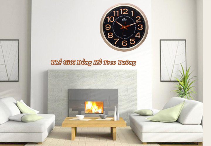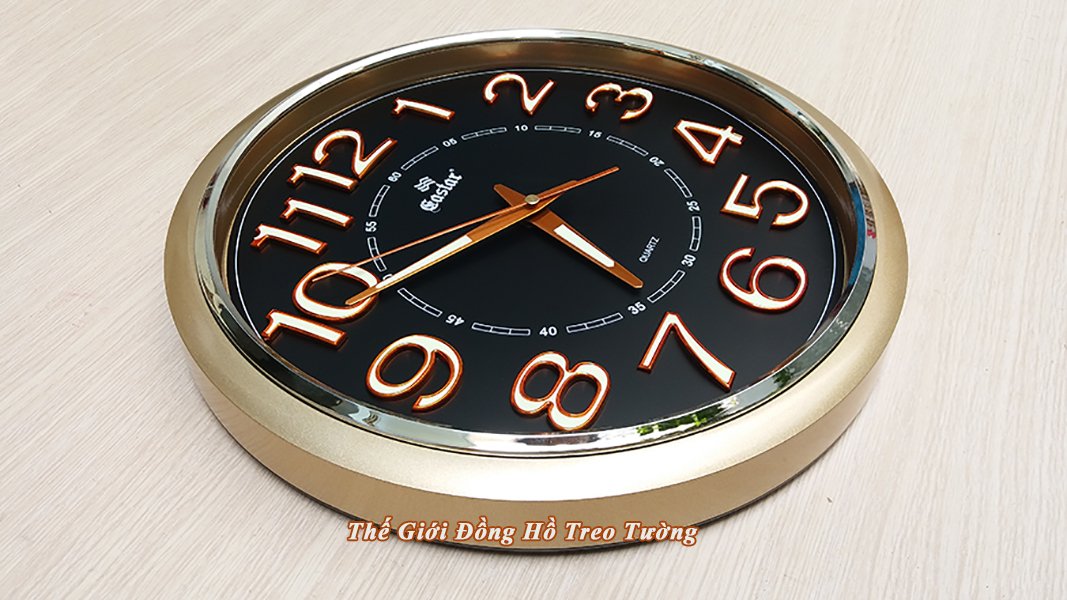Đồng hồ Treo Tường KIM TRÔI DẠ QUANG EASTAR Mặt ĐEN Kim VÀNG - Số nổi 3D - 885B
