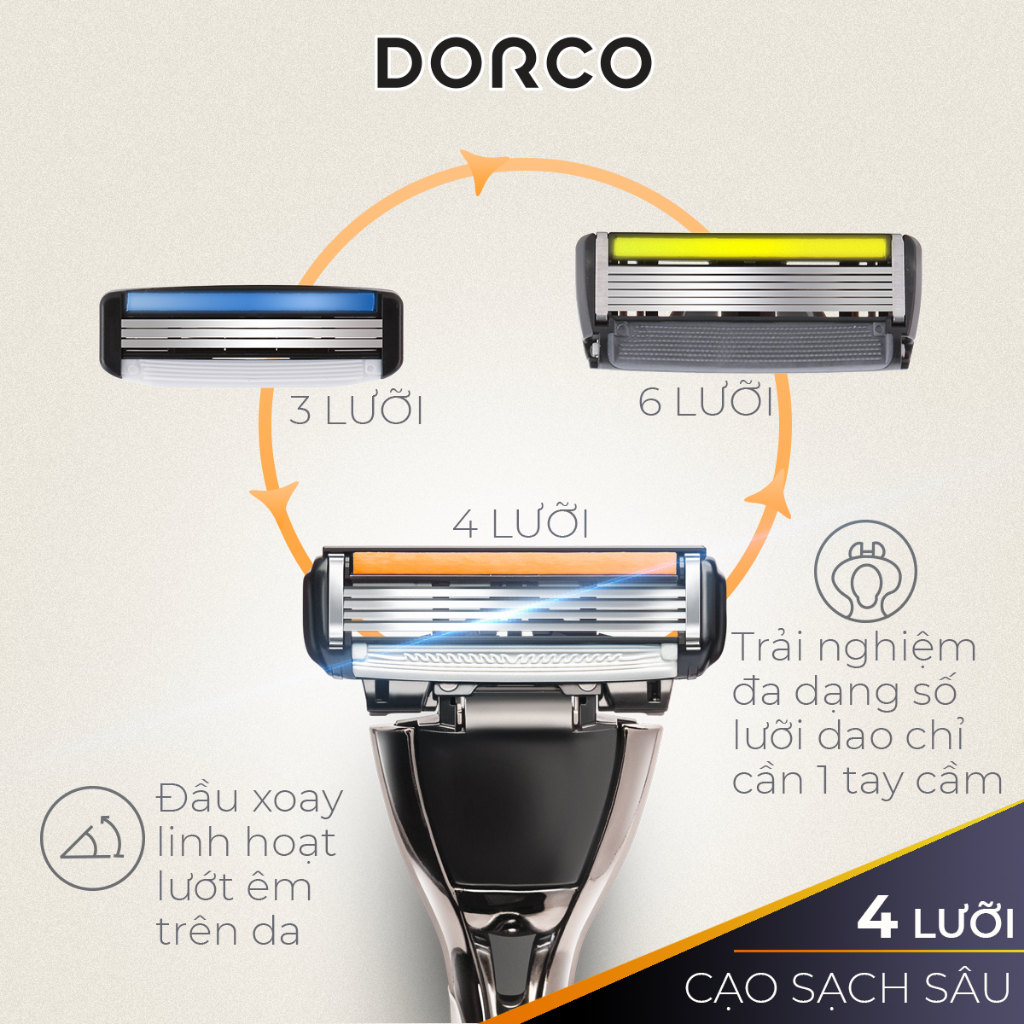 Bộ Dao Cạo Râu 4 Lưỡi Dorco Pace 4 có 1 Cán và 9 Đầu Cạo Làm Quà Tặng sở hữu thiết kế tinh tế với phần đầu lưỡi dao có cấu trúc mở, cho bạn dễ dàng vệ sinh một cách dễ dàng. Phần cán dao và khớp nối giữa đầu dao được thiết kế tinh xảo với cấu trúc động, dễ dàng trượt theo hình khuôn mặt giúp cạo sạch râu trên vùng khuôn mặt và cả phần chân râu mà không gây tổn hại đến da.