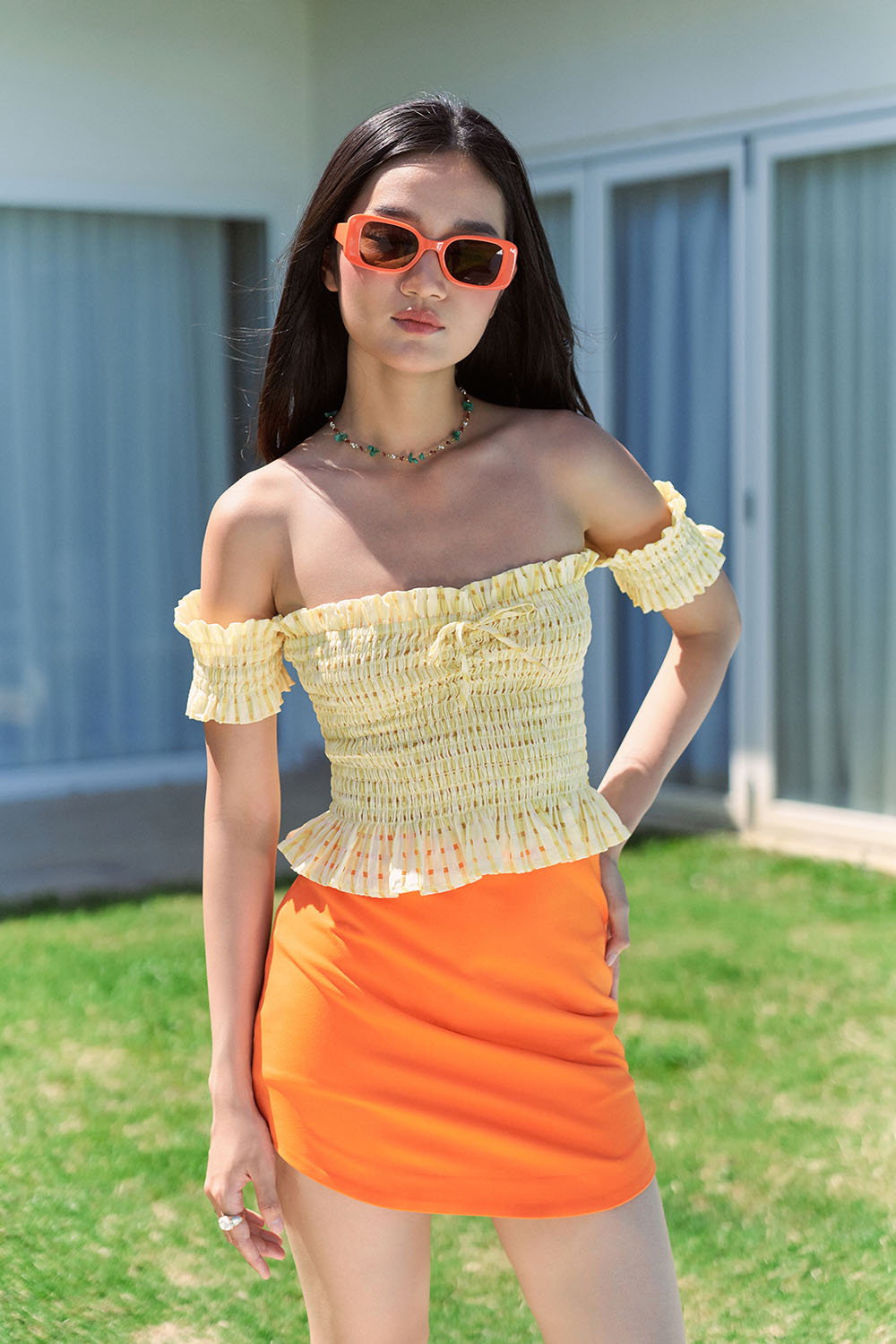 Mua tại TiktokTHÔNG TIN SẢN PHẨM [CHÍNH HÃNG] Chân váy ngắn vạt tròn nữ cam S0127