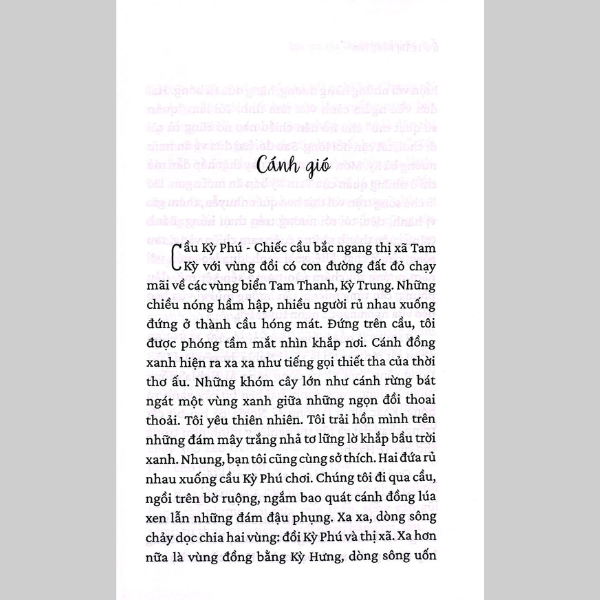 "Cậu Thời đi cùng cụ Ba đến cuối làng. Con đường làng quanh co với khóm chuối, bờ tre. Những sân nhà có giếng nước, giàn mướp trổ hoa vàng tươi. Những đụn rơm chất cao như cái nấm khổng lồ thoang thoảng mùi quê hương. Đó là mùi rơm rạ mới, mùi lá khô, mùi hương cau, hương bưởi hòa quyện tạo nên một mùi rất đặc biệt chỉ ở nông thôn mới có. Mùi hương gợi nhớ... Cậu hồi tưởng những kỷ niệm thời thơ ấu. Lúc nhỏ, cậu được mẹ Hai dắt đi vào làng mua trái cây. Cậu rất thích những buổi chiều lộng gió, cùng mẹ tung tăng đi hóng mát... Mẹ Hai yêu thương cậu, chăm sóc cậu một cách nâng niu như người ta thường nói: “Nâng như nâng trứng, hứng như hứng hoa". Cậu muốn gì được nấy. Tuy nhiên, cậu vẫn thấy thiếu thiếu một cái gì mà cậu mơ hồ không hiểu nổi.”