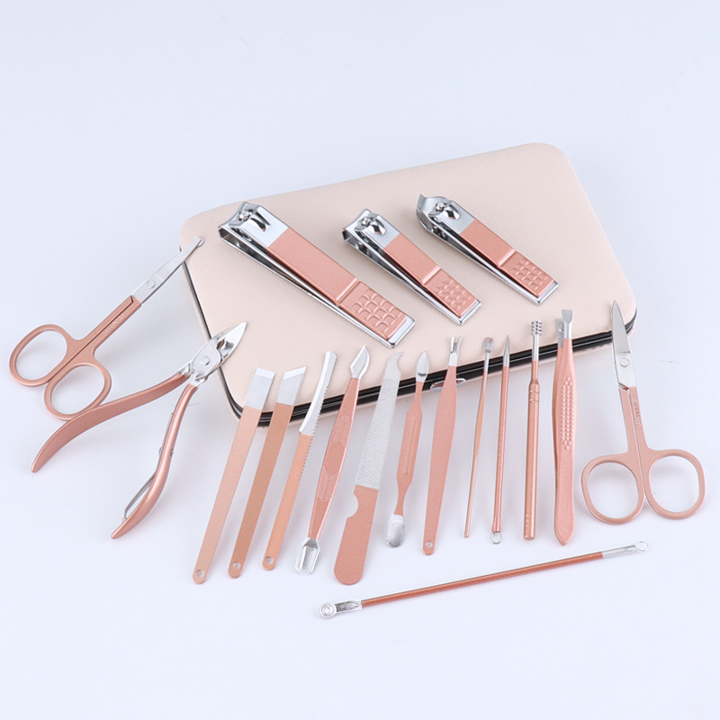 ✨Dụng cụ kềm cắt móng 16 món đa năng inox tiện dụng có túi đựng sang trọng xinh xắn dễ dàng mang theo