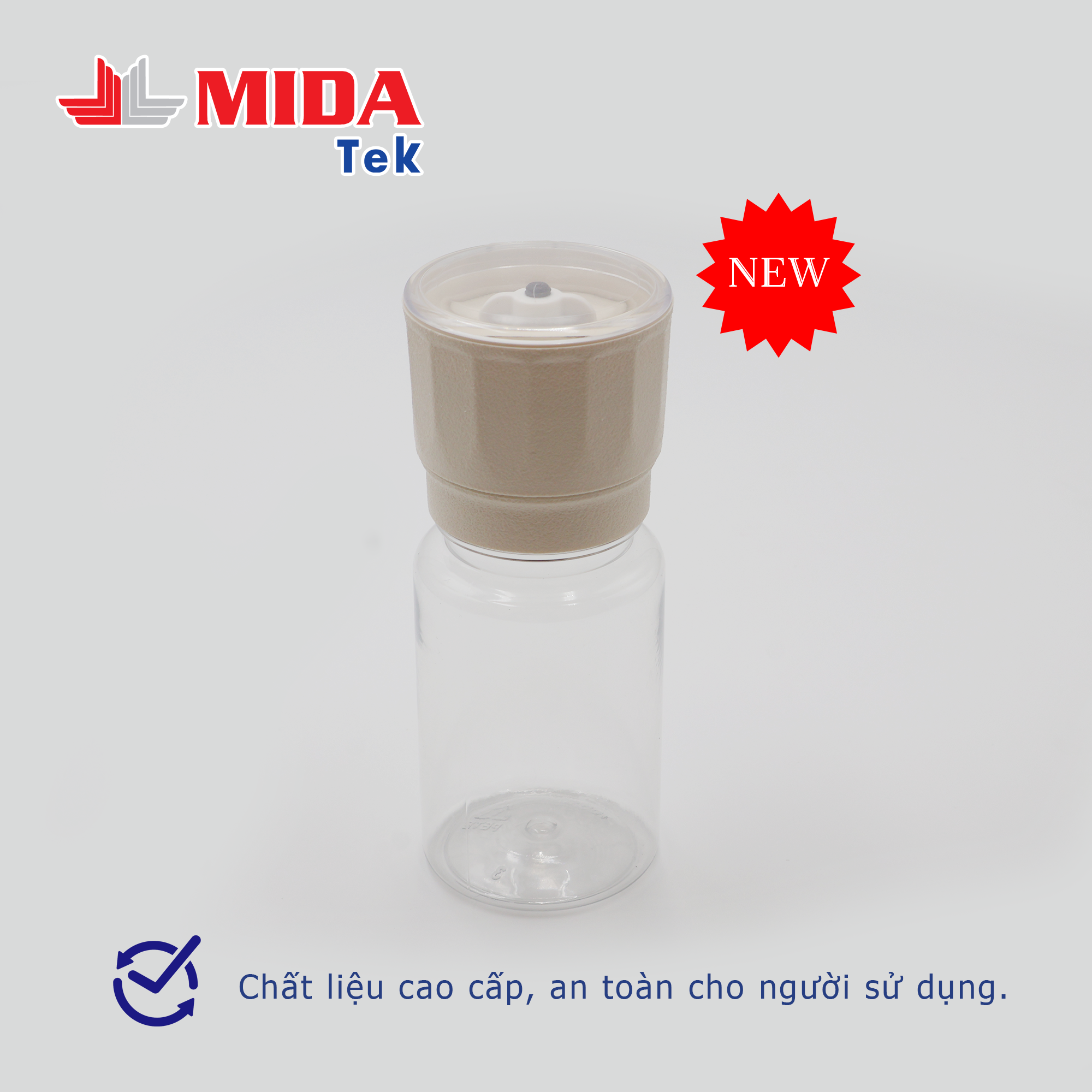 ✨Dụng cụ xay tiêu MIDATEK cối xay ceramic Màu Kem chai nhựa dung tích 100ml miệng hũ 38mm