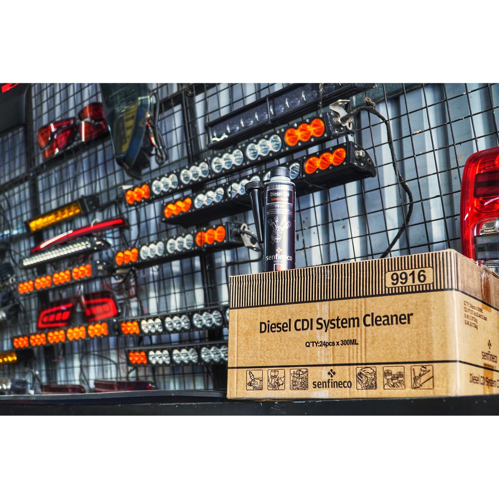 Dung Dịch Bảo Vệ Hệ Thống Phun và Xả Máy Dầu Senfineco 9916 – 300ML Diesel CDI System Cleaner   Cải thiện khả năng phun nhiên liệu & hiệu suất chung của động cơ diesel và hệ thống xử lý khí thải.   Bảo Vệ Hệ Thống Phun và Xả Máy Dầu Senfineco 9916 – 300ML Diesel CDI System Cleaner là một sản phẩm chuyên nghiệp và đặc biệt đã được phát triển cho tất cả các động cơ có hệ thống phun và kim phun hệ thống. Nó phù hợp với tất cả các động cơ diesel và turbo diesel, có hoặc không có bộ lọc hạt (DPF). Hỗn hợp phụ gia này giúp làm sạch, hòa tan và bảo vệ hiệu quả tất cả các loại cặn, bao gồm cao su và cặn cacbon, khỏi sự hình thành mới. Chống lại hơi ẩm ngưng tụ hiệu quả, nhũ hóa các hạt nước với nhiên liệu trong bình nhiên liệu, loại bỏ sự ăn mòn và mài mòn, giữ cho toàn bộ hệ thống luôn sạch sẽ. Giảm tiêu thụ nhiên liệu thông qua việc làm sạch hiệu quả. Phục hồi hiệu suất của động cơ về các thông số thiết lập ban đầu. Cung cấp một giải pháp thay thế hoàn toàn cho việc làm sạch chuyên nghiệp mà không cần tháo dỡ toàn bộ mạch, thêm vào bình trước khi tiếp nhiên liệu, 300 ML chất tẩy rửa cho 50 lít dầu diesel.