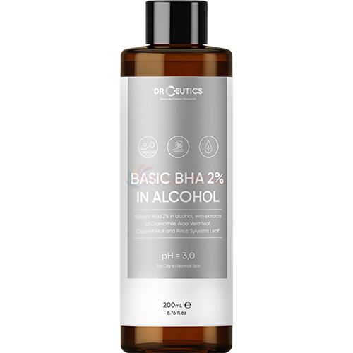 Dung dịch DrCeutics Basic BHA 2% In Alcohol Thành phần:  Acid salicylic: giúp làm bong tế bào da, tiêu sừng, thông thoáng và giảm kích thước lỗ chân lông, chống viêm, kháng khuẩn, kháng nấm,