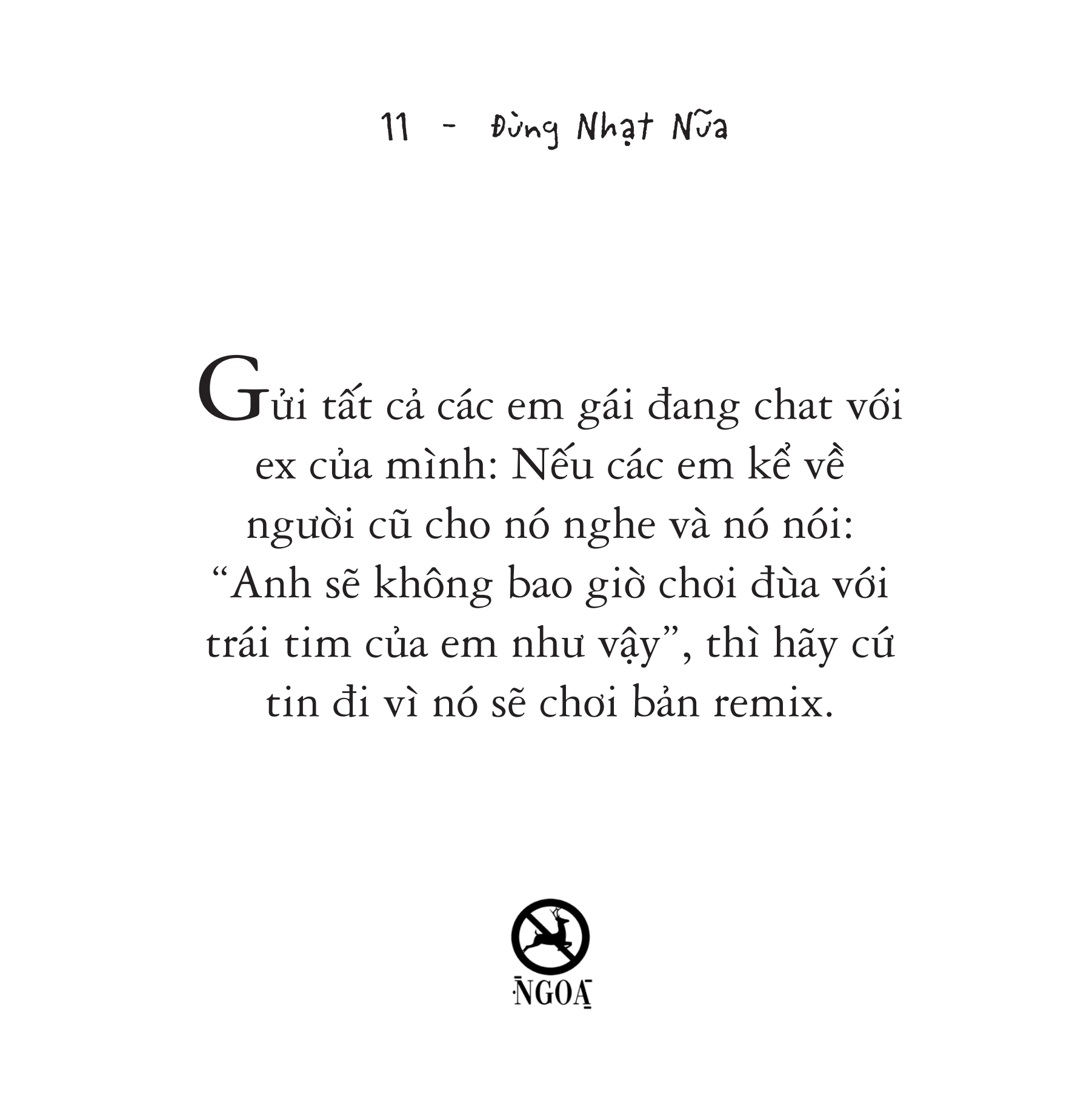 “Đừng nhạt nữa” - Cuốn sách với sự nhúng tay từ NGOA, tác giả của định nghĩa “Tuesday” (người thứ ba) gây bão cộng đồng mạng, sẽ mang đến cho bạn những tiếng cười không ngớt cũng như nguồn năng lượng tích cực giúp bạn đối mặt với độ phũ của cuộc đời.