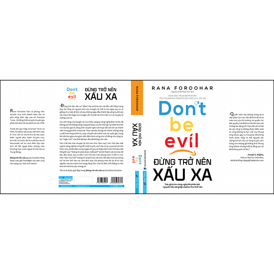 Là biên tập viên kinh tế của Financial Times và nhà phân tích kinh tế toàn cầu cho CNN, Rana Foroohar đã dành nhiều năm quan sát và phân tích các tập đoàn công nghệ lớn (Big Tech), đặc biệt là 5 công ty lớn thuộc nhóm FAANG – Facebook, Apple, Amazon, Netflix và Google – từ đó đưa ra nhiều phát hiện “gây sốc” trong cuốn sách “Đừng trở nên xấu xa” (tựa gốc: “Don’t Be Evil”).