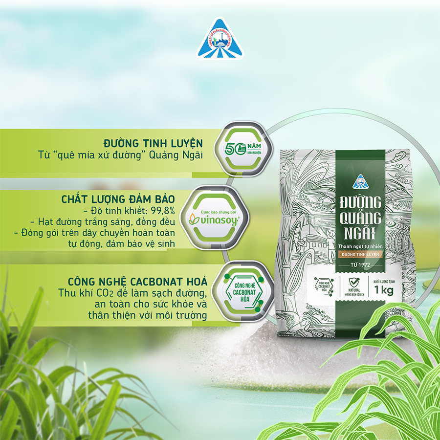 Mua tại Tiktok- Đường tinh luyện Quảng Ngãi khởi nguồn từ "cái nôi của mía đường" Quảng Ngãi, trong suốt 50 năm qua, trên vùng nguyên liệu mía Tây Nguyên trù phú, mọi tinh túy ngọt ngào từ tự nhiên đã được chắt lọc và tiếp nối để kết tinh thành những hạt đường Quảng Ngãi "thanh ngọt tự nhiên".