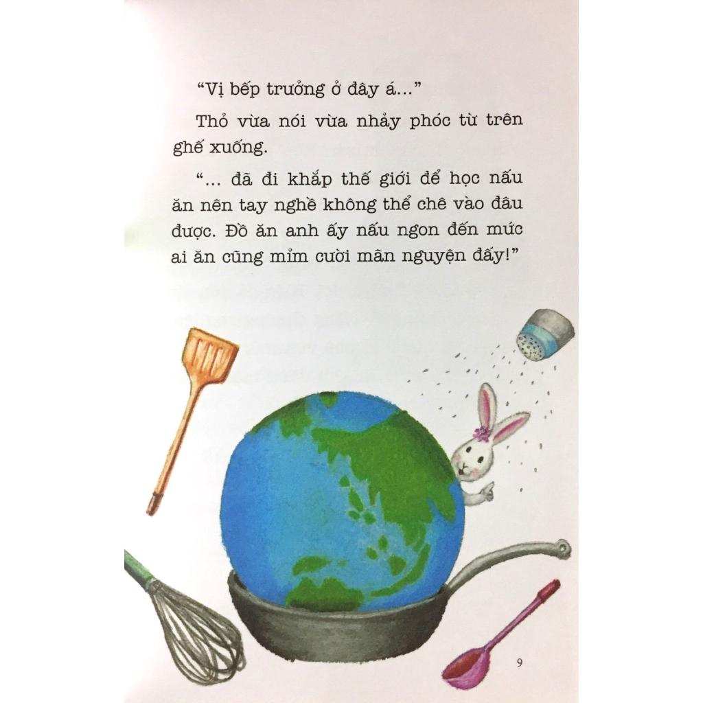 Ehon - Gia Vị Yêu Thương Mở đầu cuốn sách đầy thú vị này là câu chuyện xoay quanh quán cà phê Kananorimo, ông chủ là một con chó Sói rất to lớn, nhìn trông vẽ rất hung dữ, nhưng nấu ăn cực kỳ ngon. Hình như hình ảnh của chú chó Sói được muôn thú quên đi và thay vào đó là một đầu bếp giỏi với những món ăn rất ngon. Nhưng đây cũng không phải là vấn đề chính của cuốn sách mà tác giả muốn truyền tải. Mà chính ở đây là câu chuyện xoay quanh cậu chủ Sóc và những món ăn. Cậu chủ Sóc ở trong một ngôi biệt thự sang trọng, vì gia đình khá giả nên cậu được phục vụ rất tận tình. Hầu như mọi thứ cậu muốn đều được đáp ứng cả. Nhưng có một vấn đề nào đó đến từ các món ăn của cậu. Mặc dù, quản gia của cậu đã tìm kiếm những vị đầu bếp nổi tiếng nhất khu rừng để nấu cho cậu ăn, nhưng cậu đều lắc đầu và chê bai món ăn “Dở quá!”, và chú chó Sói nổi tiếng kia cũng không ngoại lệ. Tuy nhiên, chỉ riêng Sói là không bỏ cuộc, và quyết tâm phải nấu cho cậu chủ Sóc ăn đến khi cậu ấy khen ngon mới được. Sói đã tìm đủ mọi phương pháp, mọi cách thức nhưng cũng không được, đến một hôm cậu gặp Cáo, và được nghe nói đến một loại rau thơm mang tên “Hảo cỏ” được mọc mãi trên đỉnh núi cheo leo. Có loại cỏ này thì mọi món ăn đều ngon cả. Và thế là chú chó Sói quyết tâm leo lên núi để hái được loại cỏ đó, không may chú bị rơi xuống núi và không hái được loại cỏ đó. Tỉnh dậy, chú thấy trong người rất đau, và được nằm trên một chiếc giường to và ấm. Đó là nhà của Gấu, một vị khách hàng thân thuộc của Sói. Và thế, bao nhiêu ấm ức, bao nhiêu gian khổ, Sói bắt đầu kể cho Gấu nghe. Kể đến mức bụng của Sói đói và kêu “ục…ục…ục” , thế là Gấu đã lấy hết đồ ăn dự trữ cho mùa đông ra để nấu cho Sói ăn. Mặc dù nấu không ngon nhưng Gấu vẫn nhiệt tình nấu cho Sói ăn. Là một vị đầu bếp thì việc cảm nhận một vị thức ăn rất kén. Nhưng chỉ vừa mới nếm thôi Sói lại đứng phắt dậy, và nắm lấy vai Gấu lắc lư sau đó luôn miệng hỏi “Anh đã cho cái gì vào đây mà ngon đến như vậy! Sau khi bình tĩnh và nghe Gấu trả lời, thì Sói vội vã về ngay biệt thự của cậu chủ Sóc. Nắm được bí quyết này và Sói đã thành công. Cuối cùng cậu chủ Sóc đã thốt lên từ cửa miệng mình “A, ngon quá!!!”. Cậu chủ Sóc cứ nghĩ những món ăn này đều được cho “Hảo cỏ” nên mới ngon như vậy. Nhưng sự thật không phải vậy. Bố mẹ ơi! Bố mẹ có biết rằng câu trả lời của Gấu là gì không, chỉ là một ít muối thôi, nhưng món ăn lại rất ngon. Và nguyên nhân món ăn ngon này là nhờ sự chân thành, sự lắng nghe chia sẻ của Gấu dành cho Sói. Đã từ lâu chưa ai lắng nghe Sói như vậy, một buổi tâm sự ngắn nhưng nó giúp Sói giải bày hết tất cả những nỗi buồn, nỗi phiền muộn bấy lâu nay. Và Sói đã áp dụng điều này cho cậu chủ Sóc. Hóa ra, vì công việc làm ăn của bố mẹ cậu phát triển nên cậu chủ Sóc từ lâu không được trò chuyện cùng bố mẹ, không được vui chơi cùng bố mẹ, không nhận được tình yêu thương ấm áp của bố mẹ, Và mỗi bữa ăn cậu đều ăn một mình cả. Vì thế cậu luôn cảm nhận món ăn này không ngon, mặc dù được chế biến từ những đầu bếp đẳng cấp và nổi tiếng. Và chỉ bằng những chiêu thức đơn giản, Sói đã thắng cuộc. Sói chơi với cậu chủ Sóc, và dưới sự ngạc nhiên của muôn loài khi thấy cậu chủ Sóc lần đầu tiên cười thoải mái như vậy, sau đó Sói lại nấu ăn và ăn cùng cậu ấy. Chỉ đơn giản thế thôi, cũng những nguyên liệu đó, những món ăn đó nhưng sao ngon lạ thường. Sự chân thành, sự quan tâm, chia sẻ, lắng nghe và có một trái tim nồng hậu, đó là những gia vị yêu thương để có một bữa ăn ngon! Bố mẹ hãy thử áp dụng cho bé nhà mình nhé! Và không những thế câu chuyện này có thể giúp trẻ học được những bài học sau: Sự yêu thương hòa đồng của muôn loài thú với nhau. Sự kiên trì, quyết tâm của Sói để làm món ăn cho cậu chủ Sóc. Sự chia sẻ lẫn nhau, quan tâm, giúp đỡ, lắng nghe nhau những lúc khó khăn. Một cuốn truyện nhỏ nhưng cả bố mẹ và con đều được học những điều bổ ích và cần áp dụng cho riêng mình.