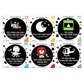 BỘ SÁCH SONG NGỮ KÍCH THÍCH THỊ GIÁC Mẹ có biết lúc mới chào đời trẻ không thể nhìn rõ ràng, thị giác của bé phải mất 1 năm để có thể hoàn chỉnh, thậm chí phải mất một thời gian dài mới có thể phân biệt các màu sắc? Trẻ ngay khi vừa chào đời, thị giác là giác quan có thể coi là hoạt động sớm và mạnh mẽ nhất, bé đã biết dùng mắt để phản ứng với môi trường xung quanh. Đặc biệt các em bé sơ sinh thường thích những hình ảnh có độ tương phản cao, thích nhìn những bức ảnh đen trắng để dễ dàng phân biệt. Vì vậy mẹ hãy trang bị cho bé yêu của mình bộ sách (6 cuốn) KÍCH THÍCH THỊ GIÁC BLACK AND WHITE giúp thị giác của con trở nên vượt trội. Nội dung là những chủ đề gần gũi như phương tiện, con vật, động vật, hình khố Sách có màu sắc mang độ tương phản cao, chủ đạo là trắng và đen, hình ảnh sáng rõ thu hút sự tập trung, giúp bé nhận diện rõ nét hình dạng, đồng thời kích thích thị giác cho bé. Bộ ehon trắng - đen thiết kế độc quyền; cho các bé sơ sinh dung sách xoay quanh những chủ đề gần gũi như phương tiện, con vật, động vật, hình khối với giọng văn cực kỳ dễ thương, thân thiện để bé nhận được thêm những thông tin, hình ảnh cho mình. Ngoài ra Ehon Black and White books còn là bộ sách song ngữ để bé có thể tập làm quen với tiếng Anh với những danh từ cơ bản dễ nhớ. Ngoài việc là bộ sách đen trắng giúp phát triển được thì giác của trẻ thì Ehon Black and White books còn là sách song ngữ giúp bé làm quen với tiếng anh. Việc nâng cao khả năng ghi nhớ vốn từ tiếng anh là bước đệm vô cùng quan trọng, hiểu được điều này, Black and White book sẽ giúp bé ghi nhớ cực nhanh và làm quen với rất nhiều chủ đề gần gũi thân thuộcHình ảnh kèm theo sinh động, hấp dẫn theo từng chủ đề giúp bé dễ dàng nhận biết, tạo cho bé sự hào hứng khi bắt đầu bài học. Việc ghi nhớ từ vựng chưa bao giờ dễ dàng hơn thế. Hãy để Black and White book trở thành người bạn đồng hành cùng bé yêu học tiếng anh ngay từ những từ ngữ đầu tiên.