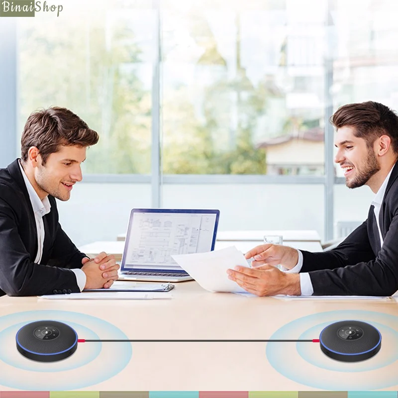 Sử dụng kết nối 2 loa Emeet với nhau, tăng số lượng và chất lượng cho cuộc họp.