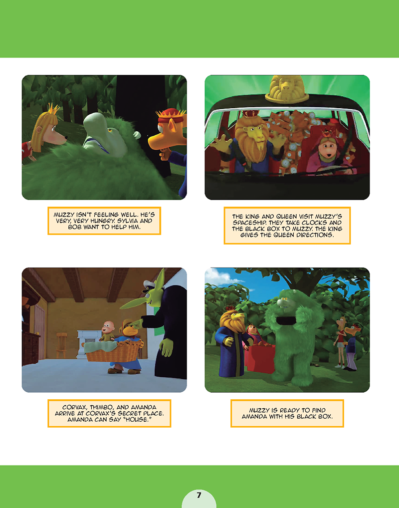 Những cuốn sách giáo khoa này sử dụng các video và cốt truyện gốc của Muzzy làm nền tảng để xây dựng các kỹ năng ngôn ngữ cơ bản và phát triển từ vựng, ngữ pháp, phát âm và sự trôi chảy ở trẻ học tiếng Anh như một ngoại ngữ.