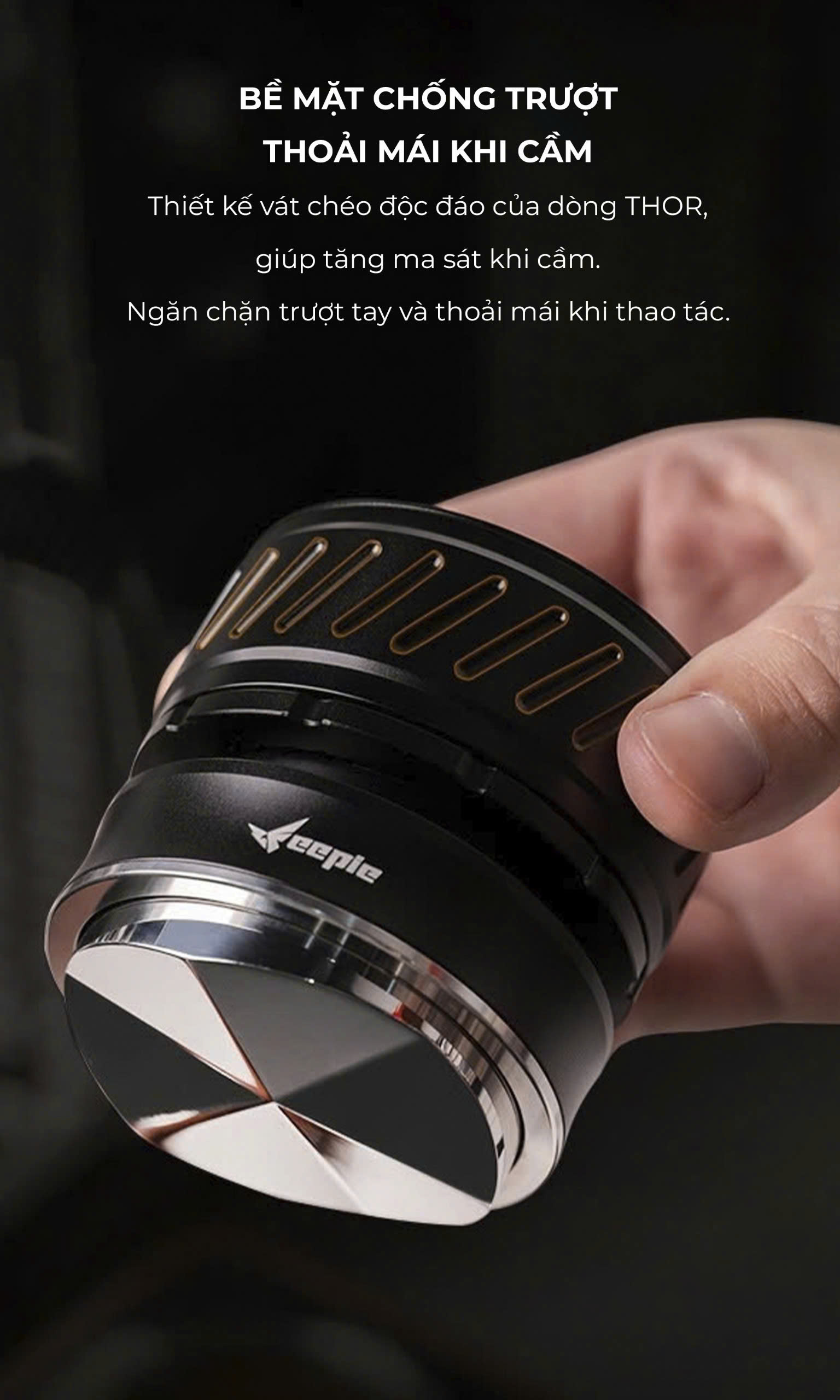 FEEPIE KIM XOAY TÁN ĐỀU BỘT THOR – PHÂN BỐ HOÀN HẢO, CHIẾT XUẤT CHUẨN BARISTA! Bạn gặp tình trạng bột cà phê bị vón cục, kênh rãnh khi pha espresso? Bạn muốn phân bố