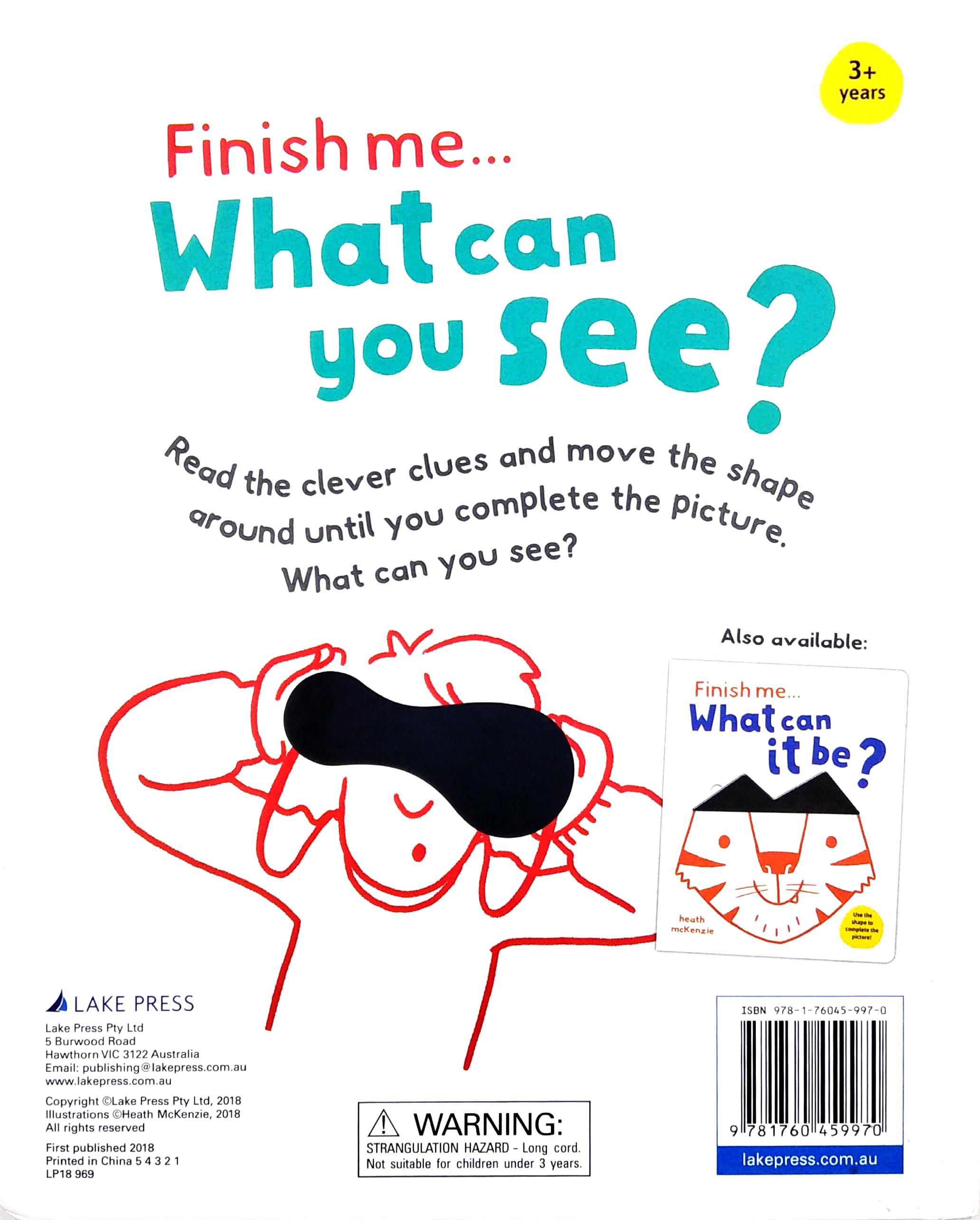 This clever book comes with a shape attached to a ribbon, for manoeuvring around! Read the clues and move the shape around until you complete the picture.What can it be, what can you see?