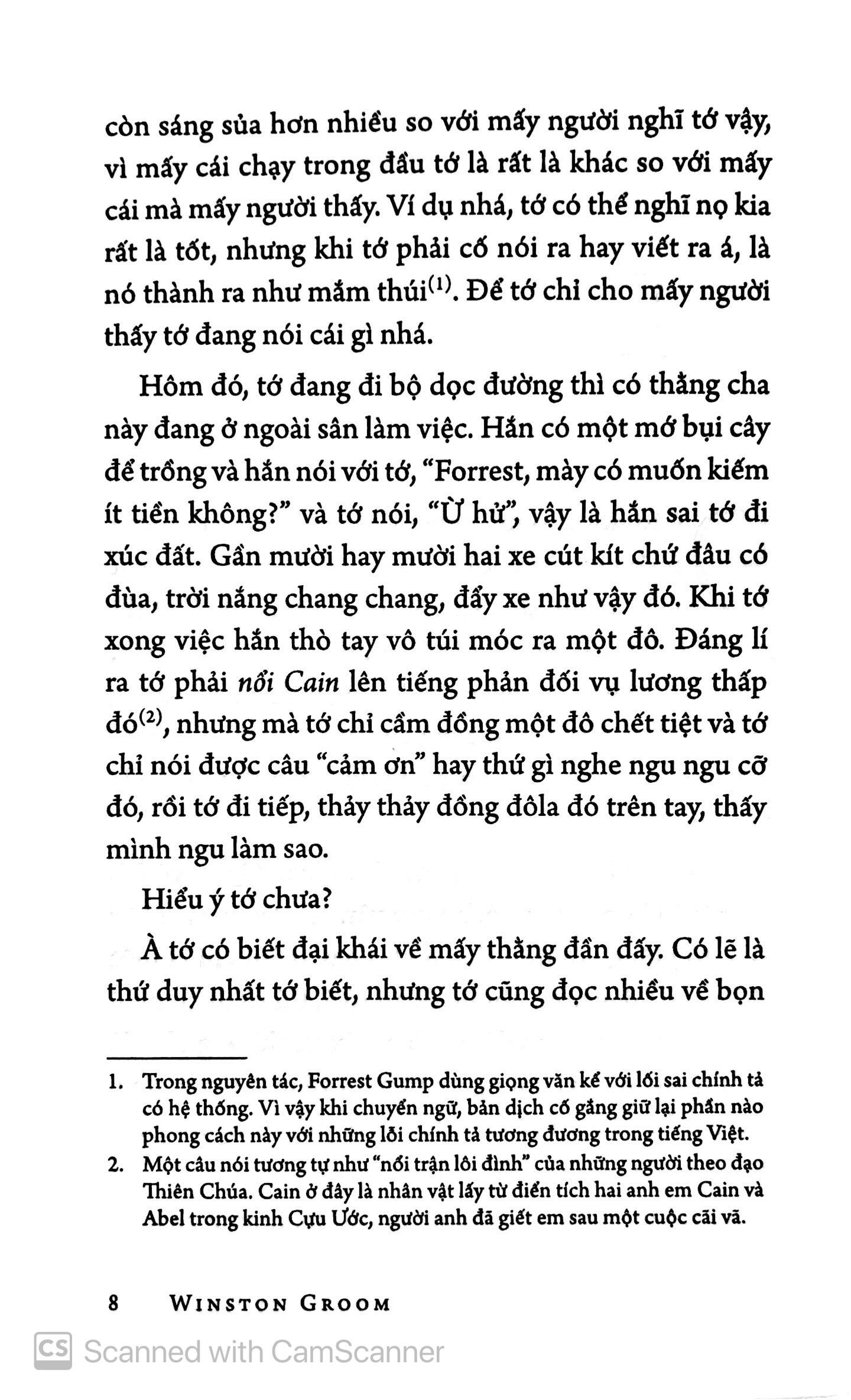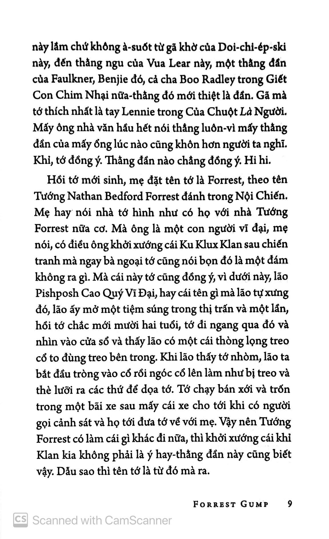 Cuốn sách với lối văn châm biếm ngầm qua góc nhìn ngây thơ của nhân vật chính là đã góp phần đưa ;Forrest Gump ;đã trở thành một biểu tượng văn hóa mới của thập niên 1990. Gump là một chàng trai ngốc dễ thương, sẵn sàng cho người khác mà không mong đợi được đền đáp. Đó cũng là giá trị nhân văn nổi bật được chia sẻ nhất quán ở cả tác phẩm văn học và điện ảnh và khiến người đọc cũng như người xem mãi hâm mộ nhân vật này.