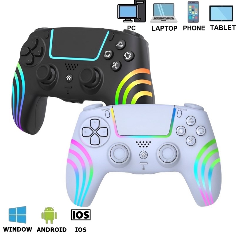 . Gamepad Tay Game Không dây Bluetooth P29 RGB cho máy tính - điện thoại - máy tính bảng . Kết nối : không dây Bluetooth hoặc cắm cáp TypeC . Nguồn : Pin sạc , Cổng sạc TypeC . Trọn Bộ bao gồm Gamepad + Dây sạc TypeC . Cần điều khiển 360 độ hall . hỗ trợ đầy đủ tính năng ( cảm ứng + loa + rung + led ) . Hỗ trợ Nút Macro và Turbo . Led RGB ôm thân tay siêu đẹp   . Thiết bị hỗ trợ : sử dụng cho máy tính - điện thoại - Máy tính bảng - máy game P4 . Hệ điều Hành Hỗ trợ :  Android + Window + iOS + Mac + Steam + P4 . Nhựa an toàn ABS , Chất lượng hoàn thiện cao.   . Điểm Nổi Bật : . Thiết kế ôm tay , sang trọng , thoải mái trong thời gian dài . 2 chế độ kết nối không dây hoặc có dây tiện lợi . Máy tính nhận như tay P4 hoặc X360 . Điện thoại , máy tính bảng nhận như tay P4 . Thời lượng pin cao . Led RGB đẹp phong cách   . Bảo hành 6 tháng , Đổi mới 7 ngày đầu tiên . Có thẻ bảo hành kèm theo sản phẩm khi nhận hàng . Có hỗ trợ phí ship cho khách ở xa khi cần bảo hành