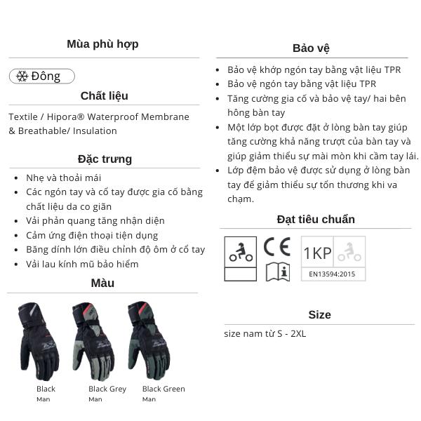 Ưu điểm nổi bật của găng tay LS2 Snow Man Cách nhiệt tốt: Găng tay LS2 Snow Man được thiết kế với tính năng cách nhiệt, chống thấm nước và bảo vệ tốt cho tay khi va chạm, phù hợp cho việc sử dụng trong môi trường lạnh và tuyết.
