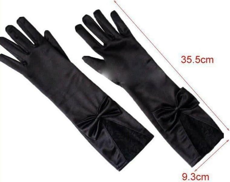 Mua tại TiktokGăng tay Cô dâu và Dạ hội MS: 40546 Chất liệu: phi bóng phối ren và nơ Kiểu dáng: kín ngón, dài ống tay. Màu sắc: đen