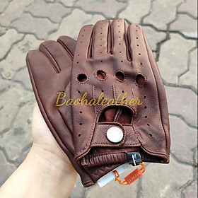 Găng tay hở ngón nam da cừu nguyên tấm BHYST03 Bao da phượt
