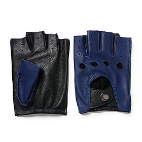 ✨Găng tay nam hở ngón da cừu nguyên tấm BHY8853 màu Xanh dương, Bao da lái xe