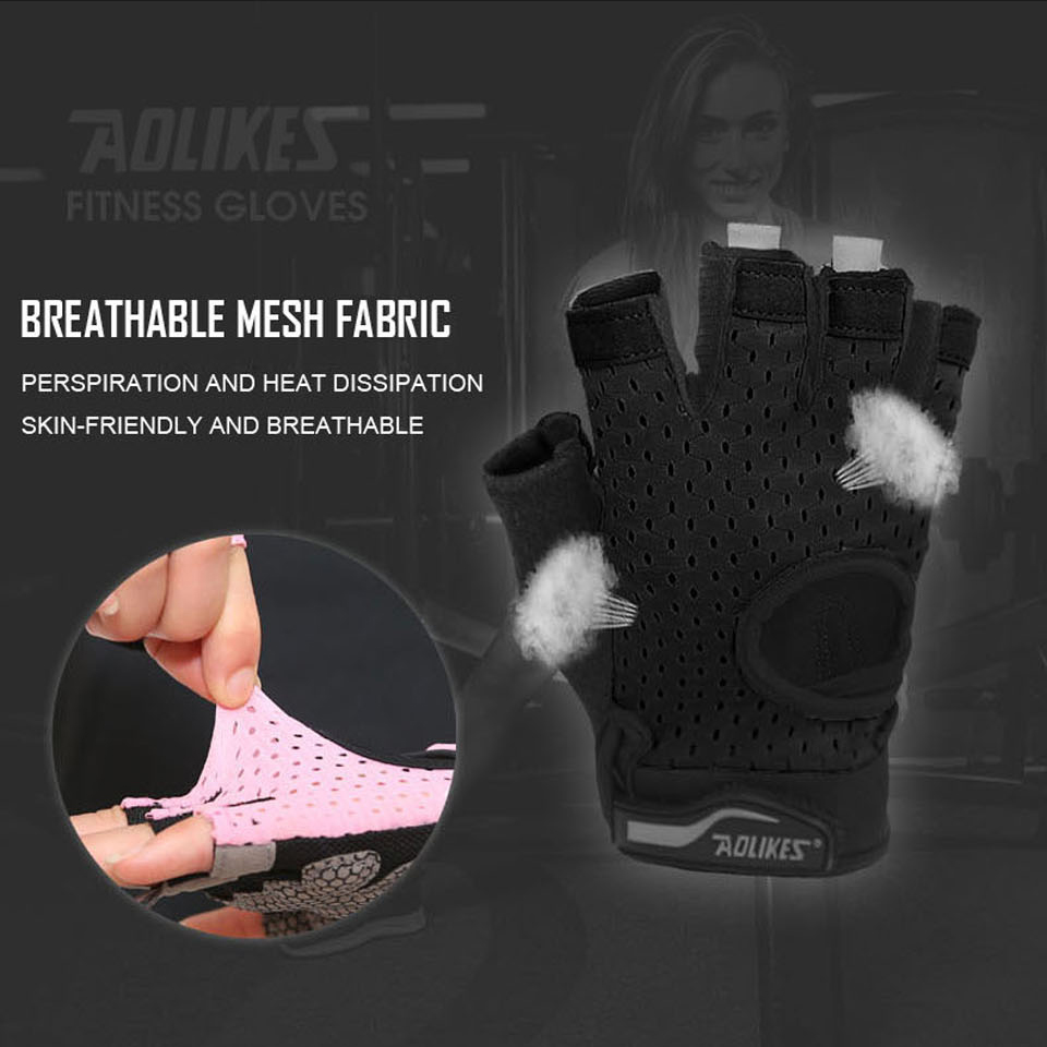 AOLIKES 113 - 1 đôi -Găng tay tập gym hở lưng có đệm lòng bàn tay chống trượt chuyên gym-chính hãng