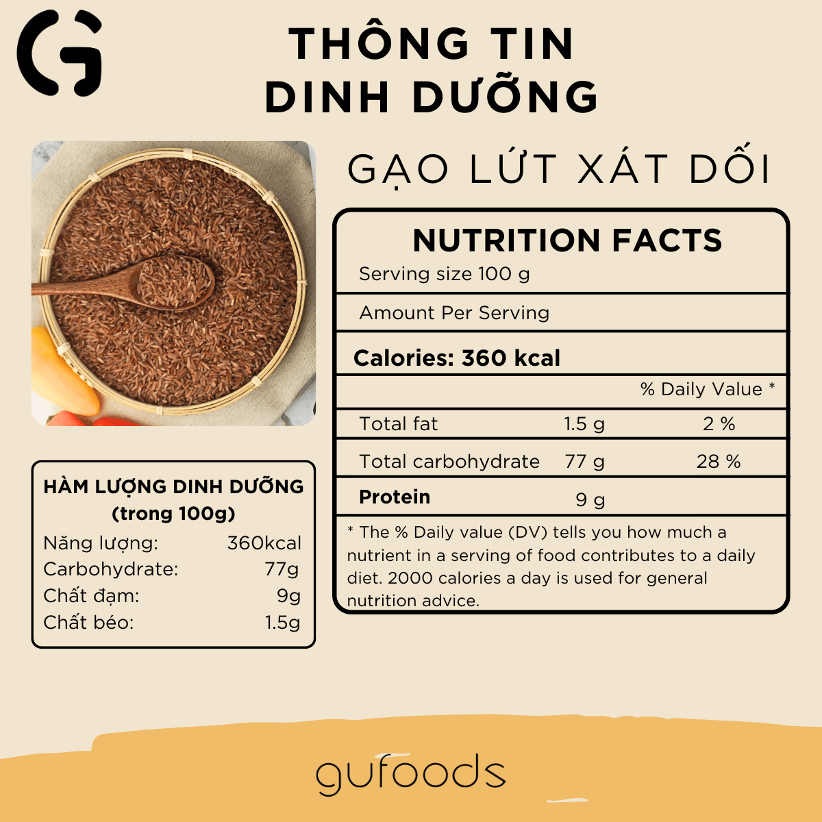 GIỚI THIỆU Gạo lứt GUfoods duy trì một lượng chất xơ, vitamin và khoáng chất tự nhiên từ lớp lứt của hạt gạo. Bạn thương có thể dễ dàng thêm gạo lứt GUfoods vào thực