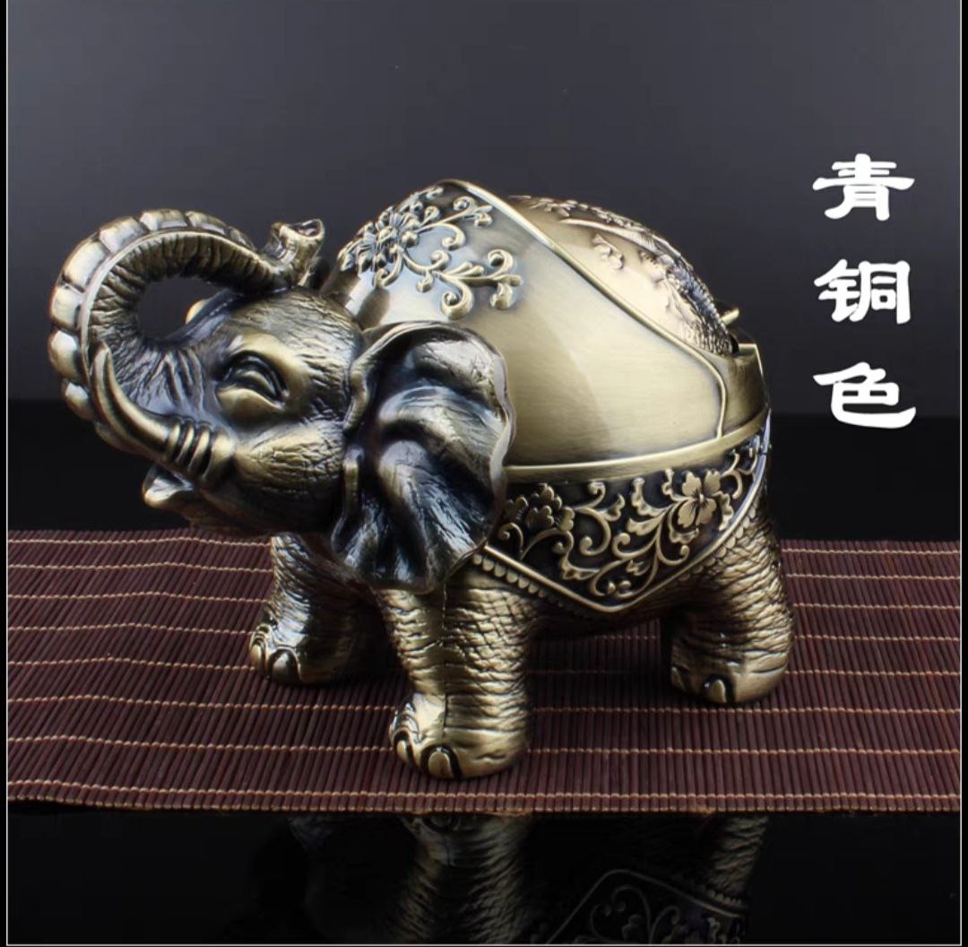 Gạt tàn thuốc lá hình tượng Voi cổ có nắp kéo đậy kín độc đáo GTT117 | Quang Duy Plasma