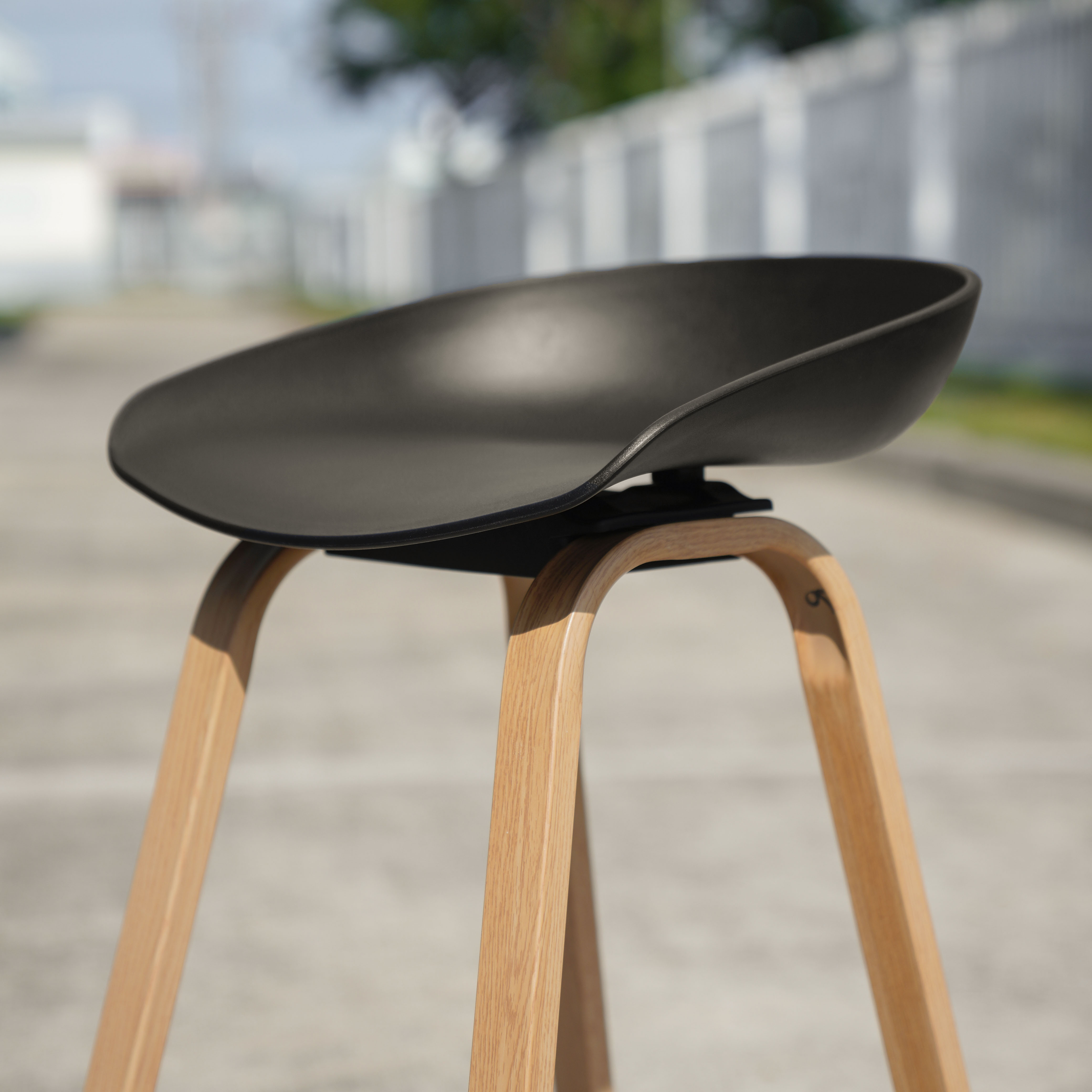 Mẫu ghế bar này gồm hai thành phần cấu tạo chính là chân ghế và mặt ghế, được kết nối với nhau bằng đinh vít chắc chắn Mặt ghế được đúc nguyên khối từ chất liệu nhựa PP cao cấp, khả năng chịu nhiệt, chịu được thời tiết khắc nghiệt Chân ghế được làm bằng chất liệu gỗ Beech, có độ bền cực kỳ cao, ít biến dạng, kháng ẩm tốt Ghế có gác chân làm điểm tựa, giúp giữ an toàn khi ngồi và dễ dàng di chuyển lên xuống ghế Công dụng