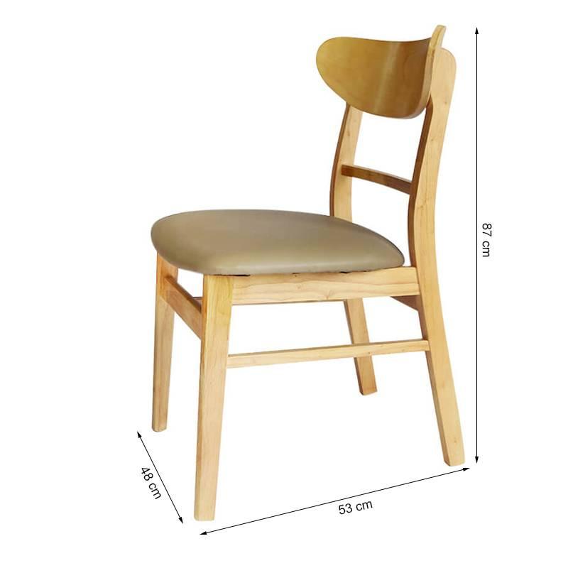Chất liệu chính: Gỗ cao su; Thời hạn bảo hành: 12 tháng; Thời gian giao hàng: 2-4 ngày; Phòng chính: Phòng ăn; Phòng khác: Nhà bếp; Yêu cầu lắp đặt: Không; Tình trạng tồn kho: Có sẵn; Phong cách: Modern; Hoàn thiện: Sơn PU; Kích thước (mm): 530 x 480 x 870; Chức năng: Ghế ăn; Loại sản phẩm: Ghế; Xuất xứ: Việt Nam; Đơn vị tính: Cái; Kiểu dáng: Ghế tựa; Tùy chọn mặc định: Bọc vải simili;