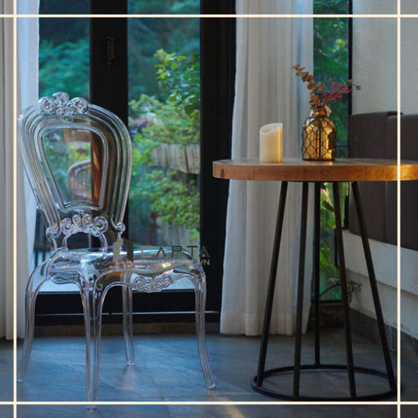 Ghế cafe nhựa PC trong suốt cao cấp cho sân vườn, ngoài trời Ghế trang điểm tựa lưng Ghost 2A-PC