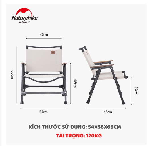 - THÔNG TIN SẢN PHẨM: - Thương hiệu: NatureHike - Dòng sản phẩm: Glamping - Mã sản phẩm: NH21JJ002 - Chất liệu: Hợp Kim Nhôm/Beech / 600D Cụ Thể 86T Vải Oxford - Kích thước: 54x58x66cm - Kích Thước đóng gói: 54.5x64x8.5cm (Không Tháo Rời) / 62x14x10cm (Sau Khi Tháo Rời) - Trọng lượng: Khoảng 2.7kg - Tải trọng: Khoảng 120kg - Màu sắc: Đen/ Be - Xuất xứ: Trung Quốc