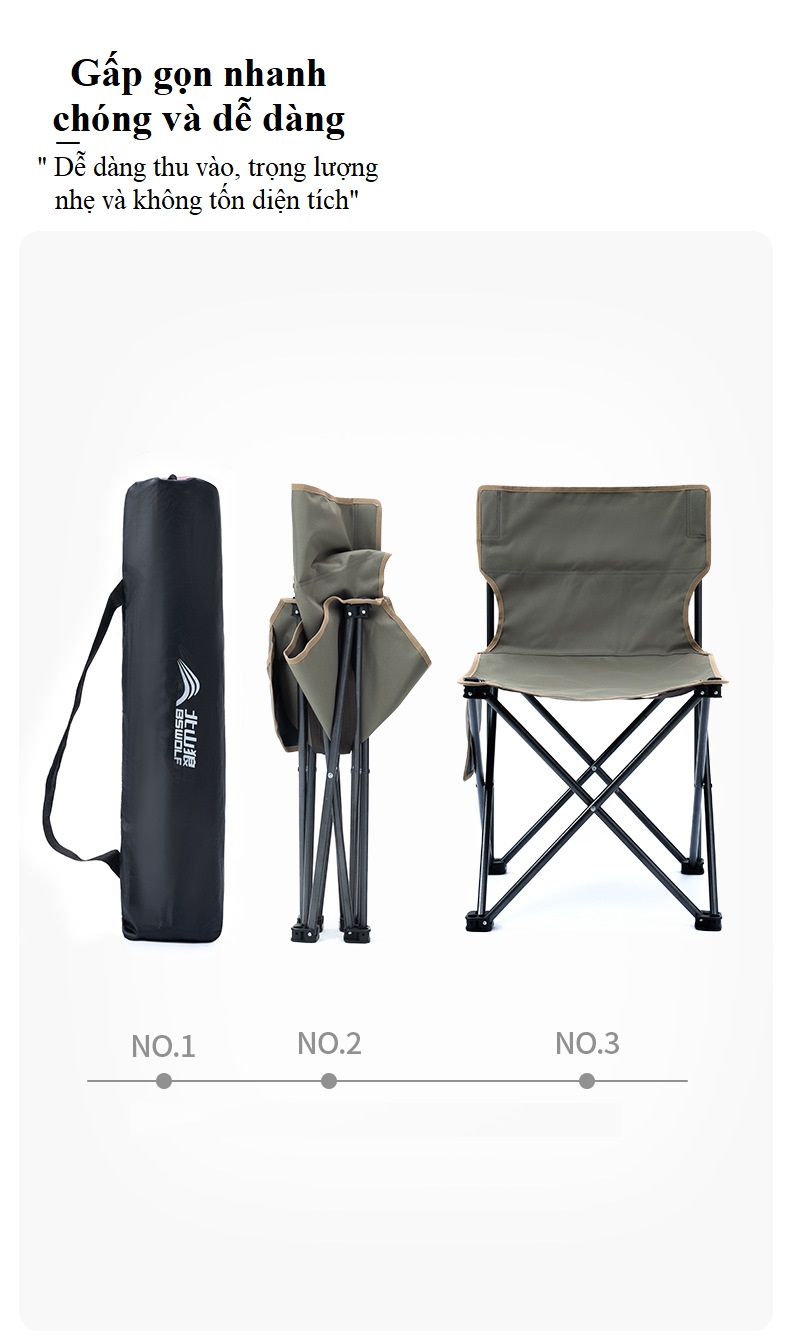 ------ Ghế Ngồi gập gọn được làm từ Chất liệu khung hợp kim nhôm sơn tĩnh điện siêu cứng, mặt ngồi bằng vải 600D Oxford cao cấp siêu êm. Khung hợp kim cứng giúp ghế