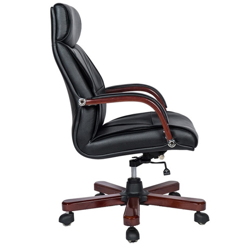 - Tay ghế được thiết kế cong hình vòm cung tạo sự cân bằng lực khi ngồi làm việc, cố định chắc chắn, an toàn. Chế tạo từ vật liệu gỗ tự nhiên sơn phủ PU bóng nhẵn ốp da trang trí tạo ấn tượng mạnh với thị giác người nhìn.