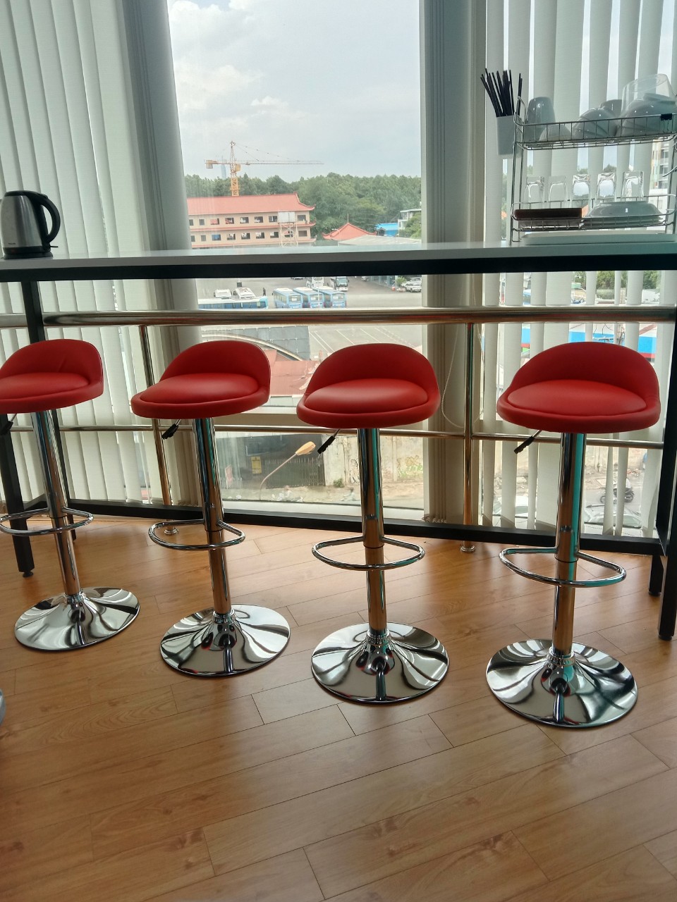 Ghế quầy bar hiện đại, có tay và lưng tựa. Được thiết kế với dáng vẻ thanh lịch hiện đại và tinh tế. Màu sắc: đen, đỏ, nâu, hồng , cam Chất liệu: PVC, chân thép