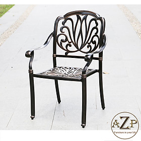 Ghế Cafe sân vườn nhôm đúc màu đồng CC2017-A Nội thất Capta Ghế ngoài trời có tay tựa thân ghế hình bông sen - Chất liệu: nhôm đúc sơn tĩnh điện màu đồng - Thiết