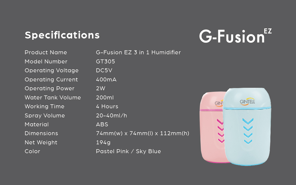 - Tên sản phẩm: MÁY TẠO ẨM PHUN SƯƠNG G-FUSION EZ
