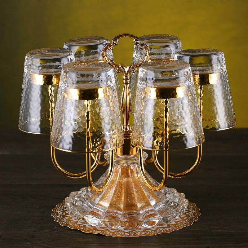 Chất liệu: thủy tinh Bộ sản phẩm gồm: 6 cốc thủy viền vàng VÀ GIÁ ÚP CỐC THEO HÌNH Thiết kế đẹp mắt, phù hợp tiện dụng Độ bền cao, chịu nhiệt tốt, hạn chế