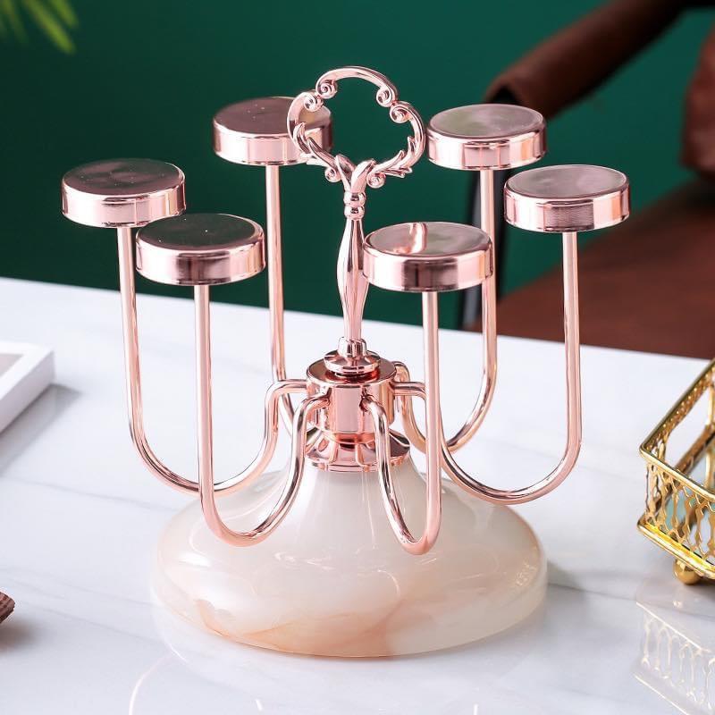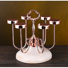 Giá úp cốc 6 chiếc trụ inox màu vàng hồng đế đá Giá cắm 6 chiếc cốc dạng gọn Giá có khay hứng nước Chất liệu sắt sơn tĩnh điện cao cấp màu vàng cực