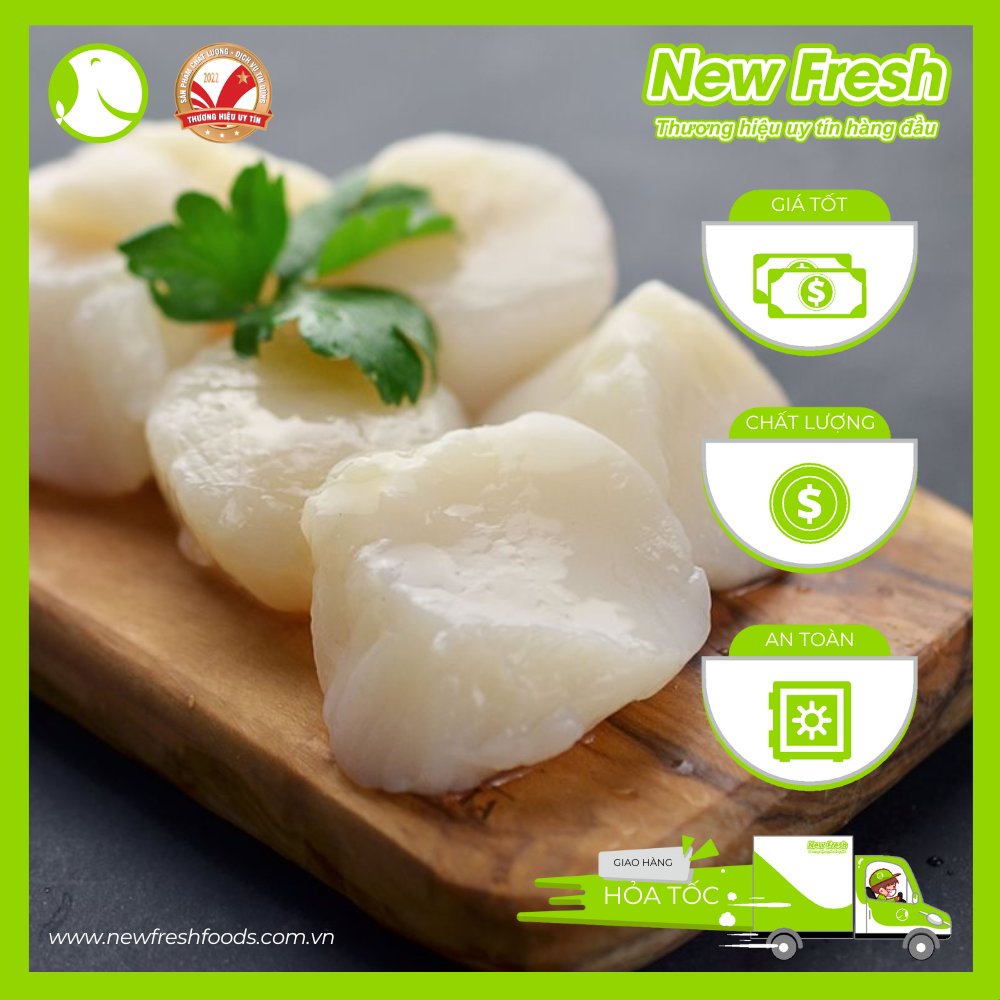 Với sản phẩm tươi sống, trọng lượng thực tế có thể chênh lệch khoảng 10%. - Xuất xứ: Việt Nam - Thành phần: 100% Cồi sò điệp Việt Nam - Quy cách đóng gói: 20-40 con/500g -