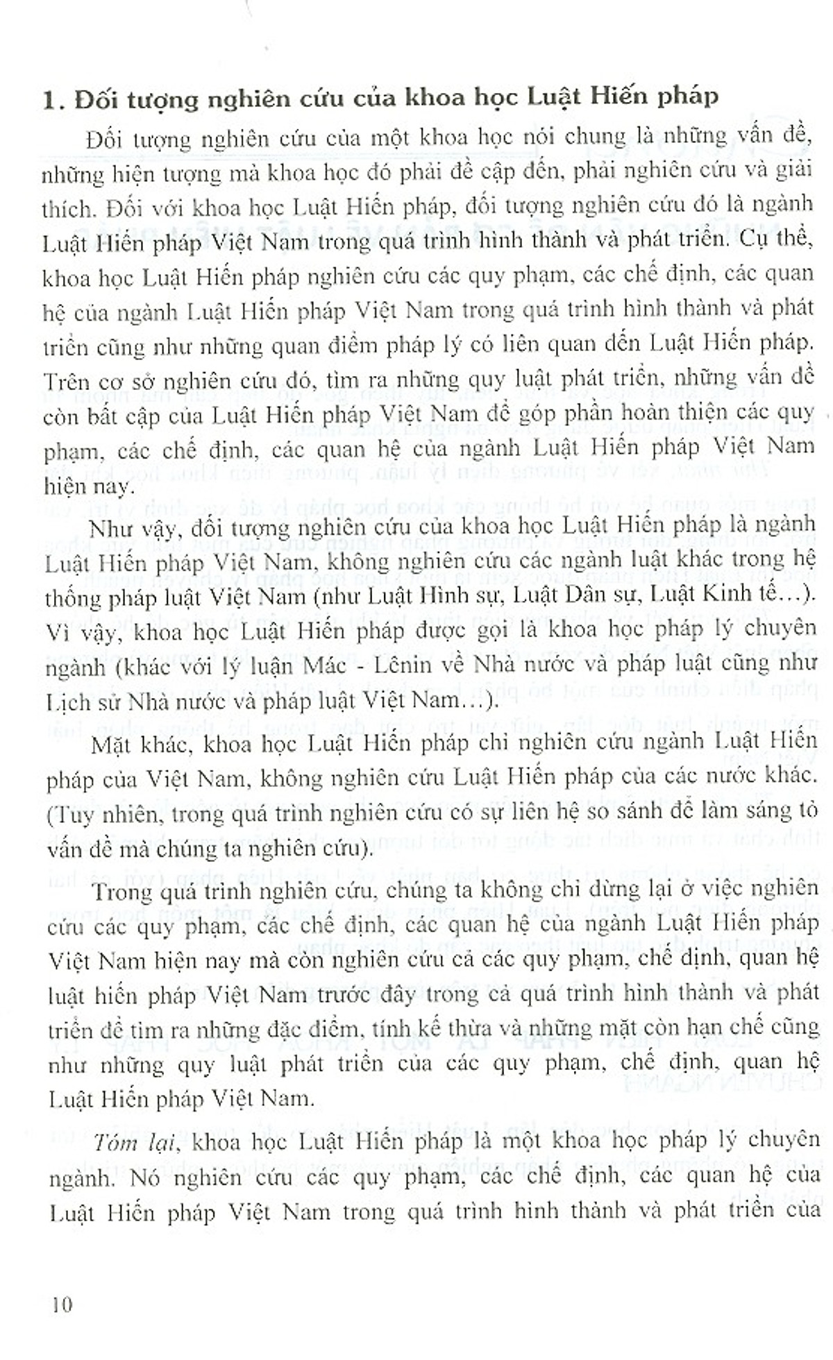 Chương 1: Những vấn đề cơ bản về luật hiến pháp. Chương 2: Hiến pháp và lịch sử lập hiến Việt Nam. Chương 3: Chế độ chính trị. Chương 4: Chế độ kinh tế. Chương