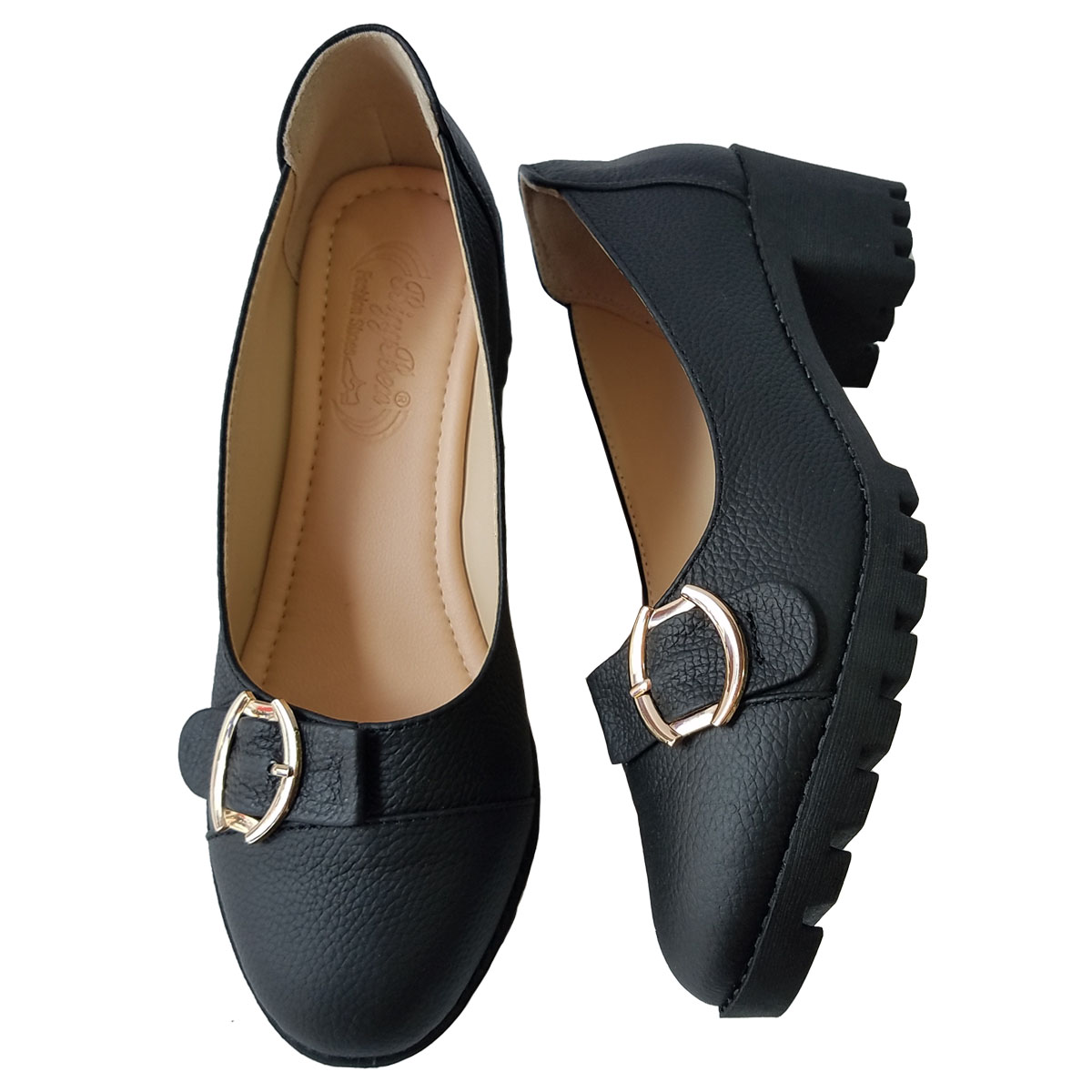 Giày cao gót nữ đẹp đế vuông 9 phân hàng hiệu rosata màu đen da ro377 ------------------------------------------------ Mô tả chi tiết: - Thương hiệu: rosata - Mã sản phẩm: ro377 - Kiểu dáng: Giày cao