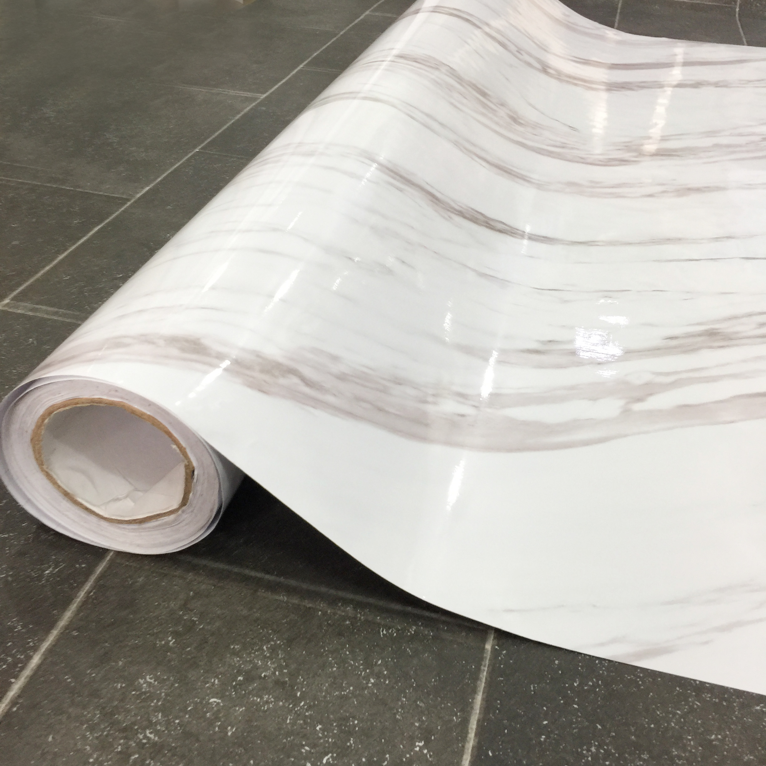 Mẫu giấy dán tường giả đá hoa cương màu trắng này có sẵn keo rồi, khách chỉ cần lột ra dán thôi.