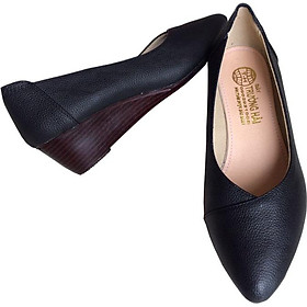 Giày đế xuồng 5cm da bò thật mũi nhọn màu đen