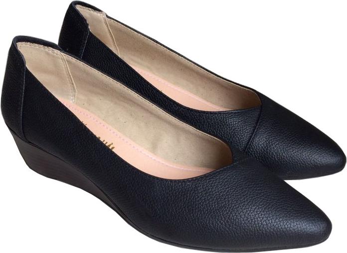Giày Đế Xuồng Giày Cao Gót 5Cm Da Bò Thật Siêu Mềm Sang Trọng Evelynv 5P0116 (Đen)