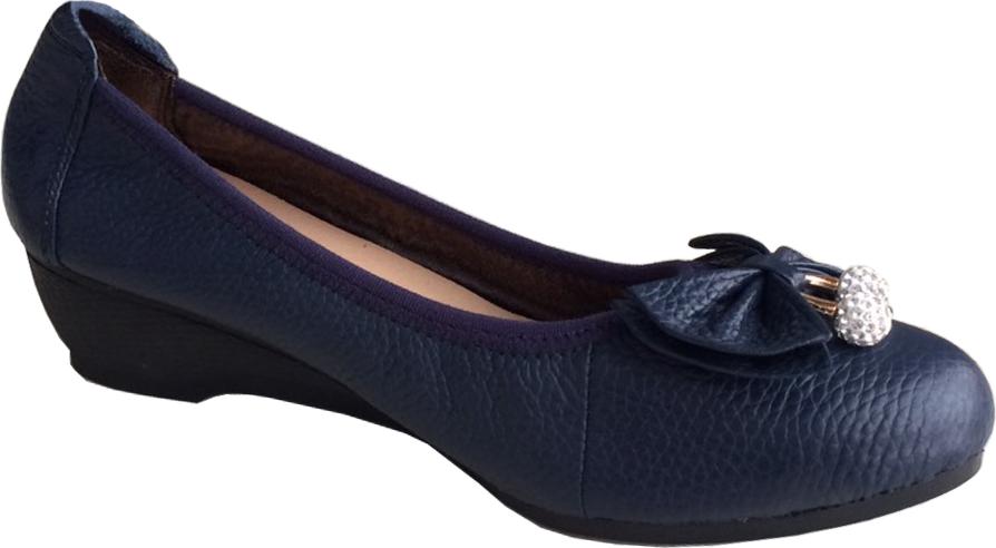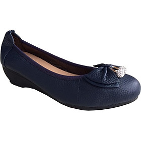 ✨Giày đế xuồng nữ Trường Hải da bò thât màu xanh đen cao 3cm đế cao su dẻo không trơn DX189