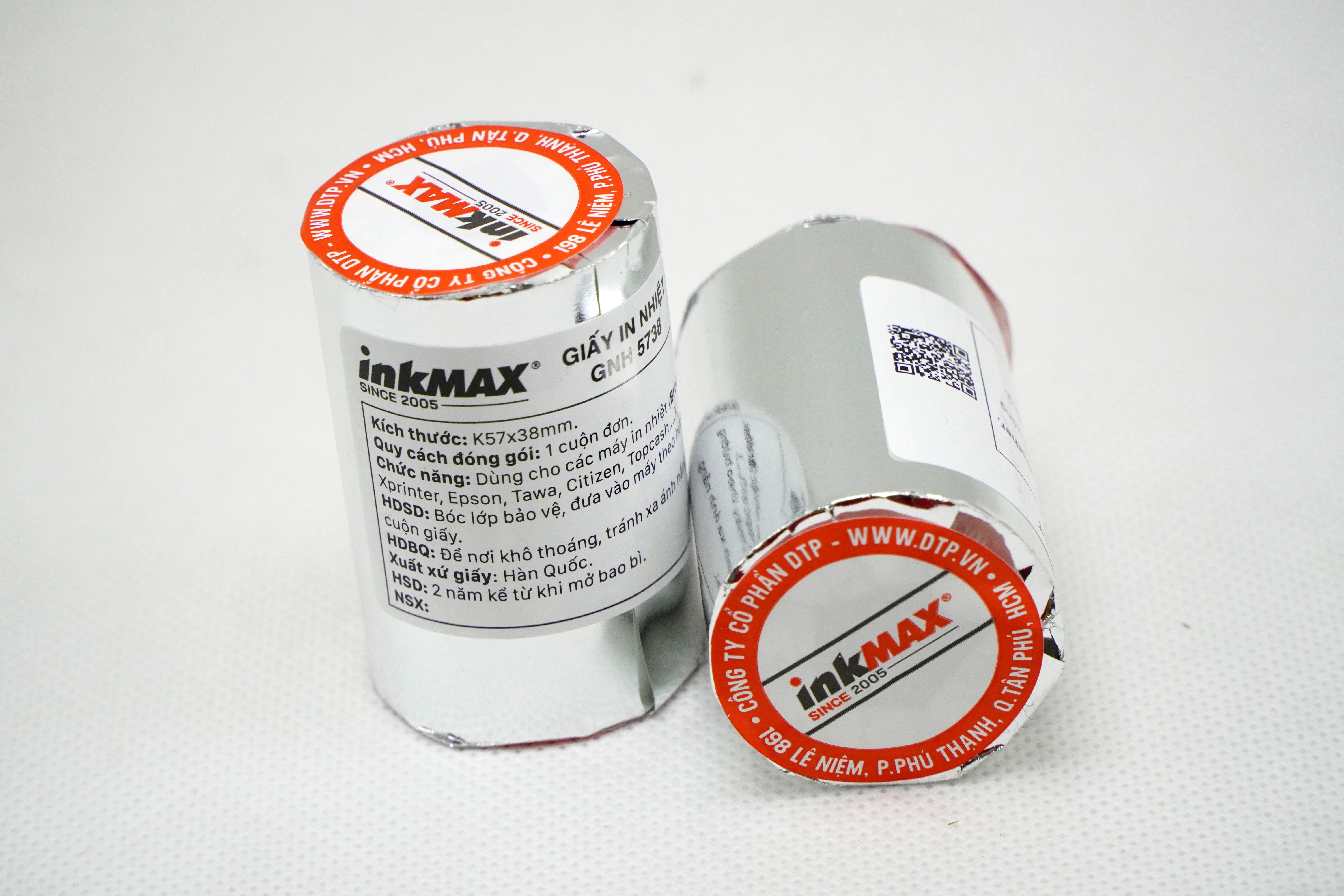 - Quy cách đóng gói: 100 cuộn / Thùng - Đường kính cuộn: 38mm - Lõi nhựa - đường kính trong 9mm, đường kính ngoài 13mm - Nguyên liệu giấy nhập khẩu chất lượng cao