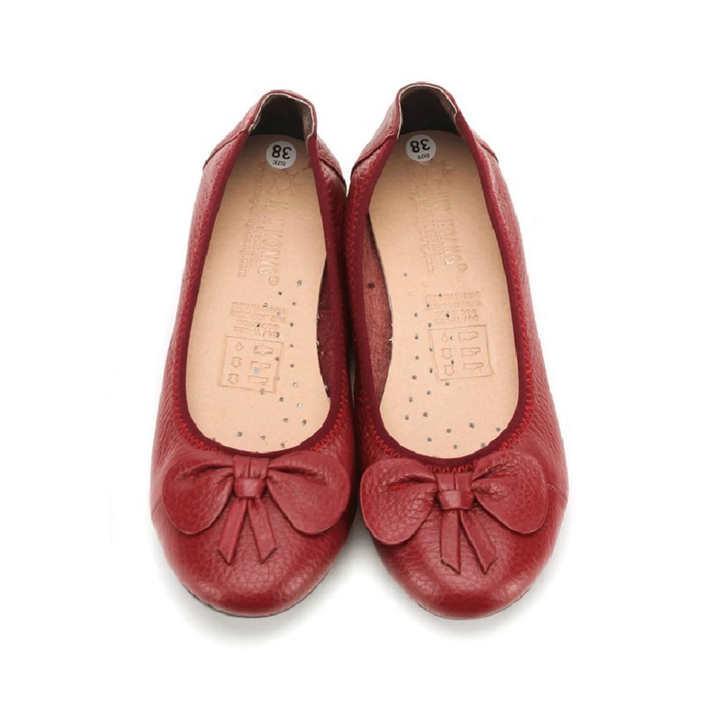 Giày nữ búp bê Huy Hoàng da bò màu đỏ đô 7909