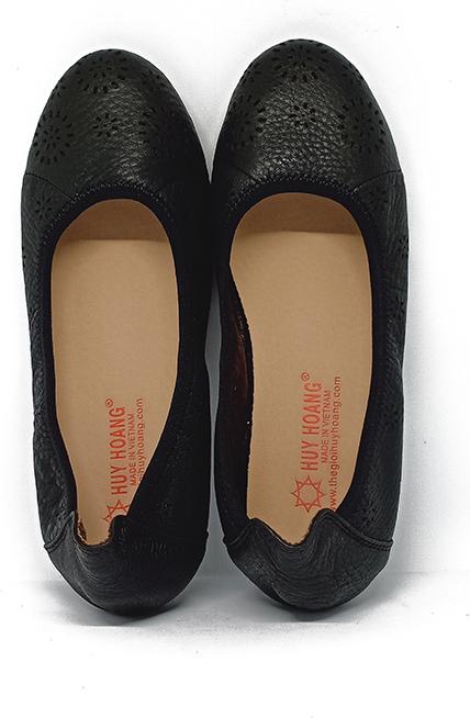 Giày nữ hoa văn Huy Hoàng da bò màu đen 7951