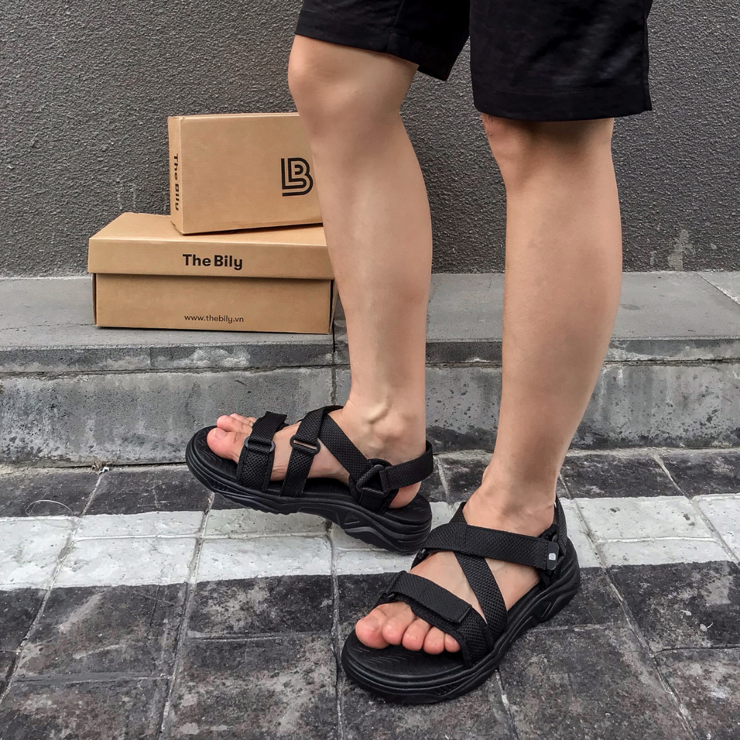 ✨Giày Sandal Nam The Bily Quai Chéo Đôi - Màu Đen BL02D